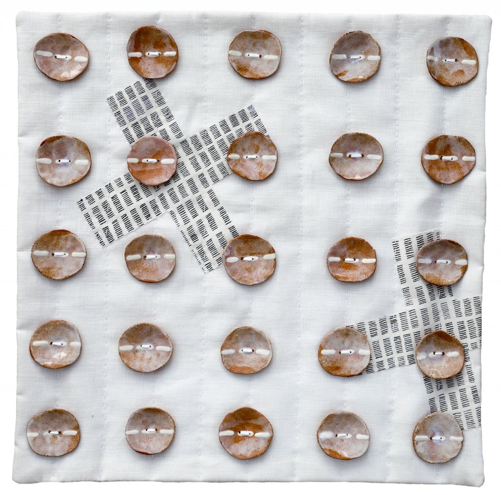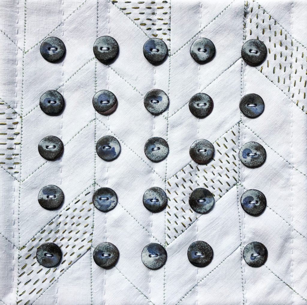 In her artwork, themes of resilience, rurality and tradition underpin an exploration of pattern-making and repetition, creating quiet artefacts that reflect aspects of the Lincolnshire landscape and frugal domesticity. Often working in series and multiples, Nicki produces objects which reference traditional techniques but tell new stories. The work itself is often constructed through repetition of shape and form. Either as textiles which utilise constructional quilt-making or ceramic objects that form dynamic assemblages.